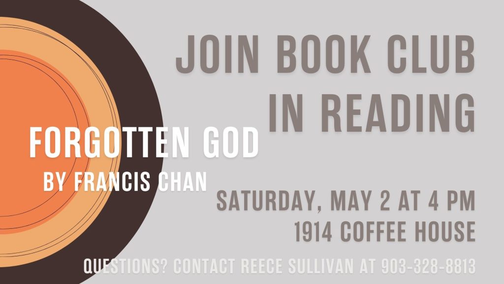 Book club meets each month and discusses a different book. This month, the book is Forgotten God by Francis Chan.